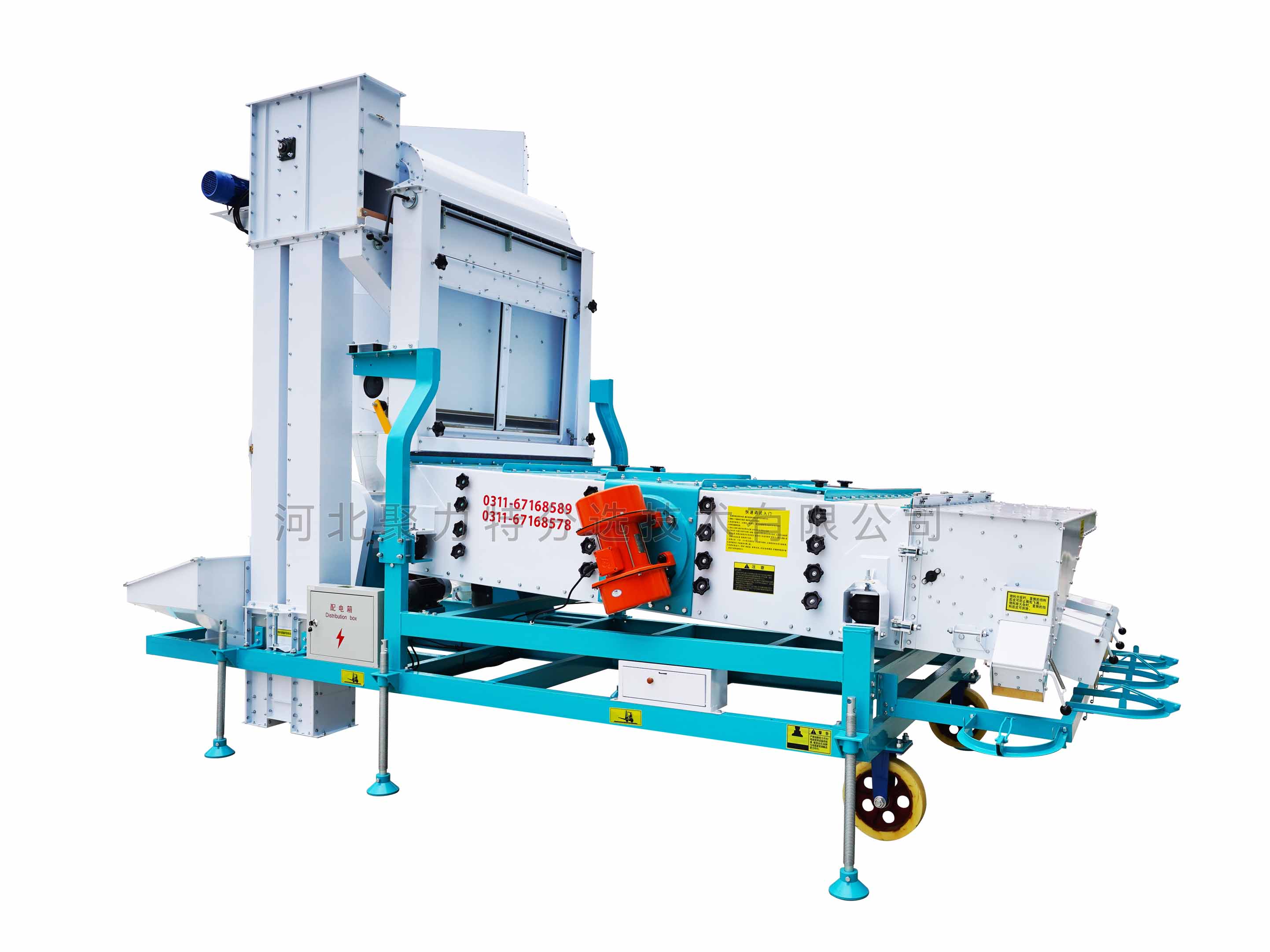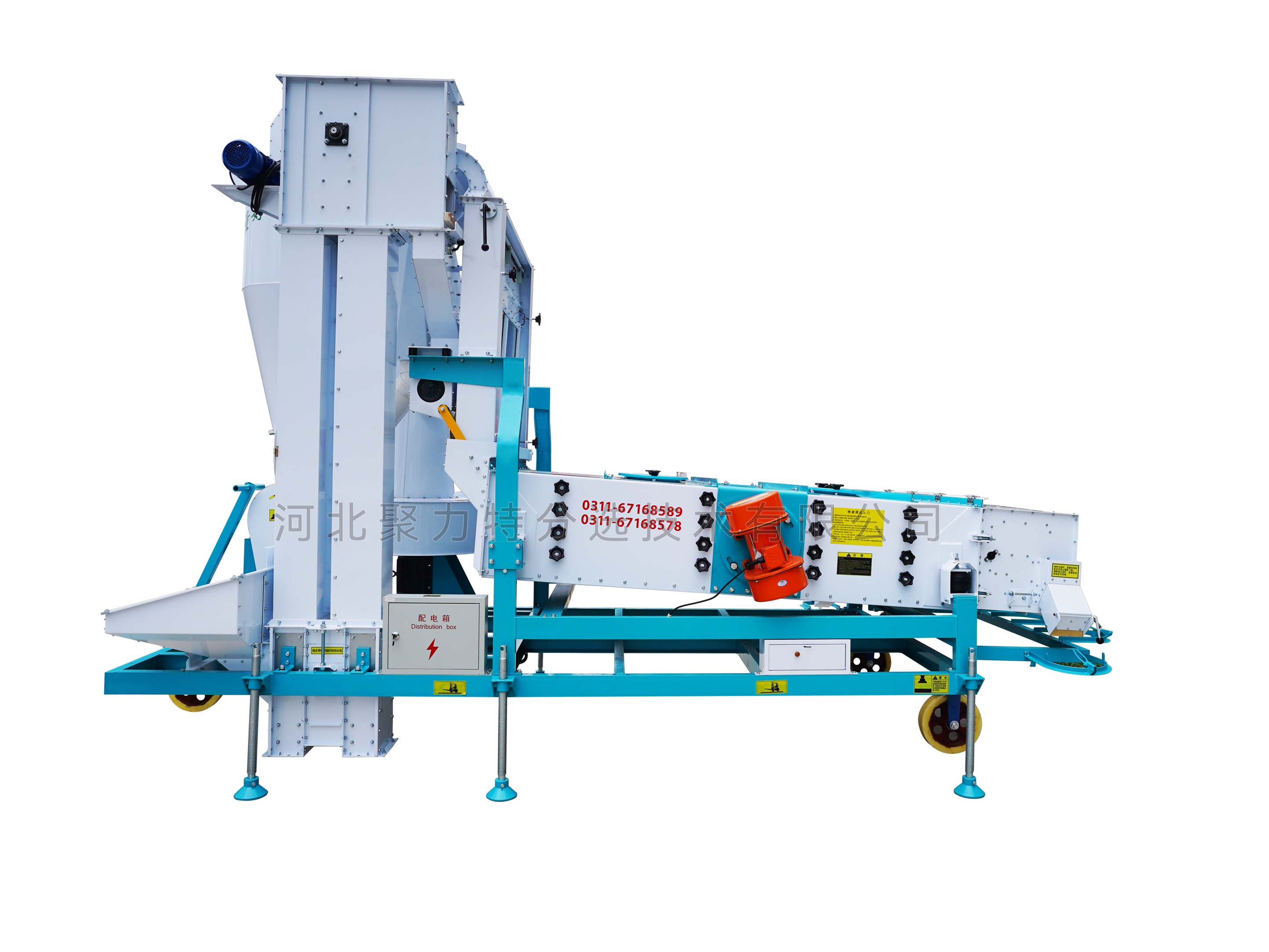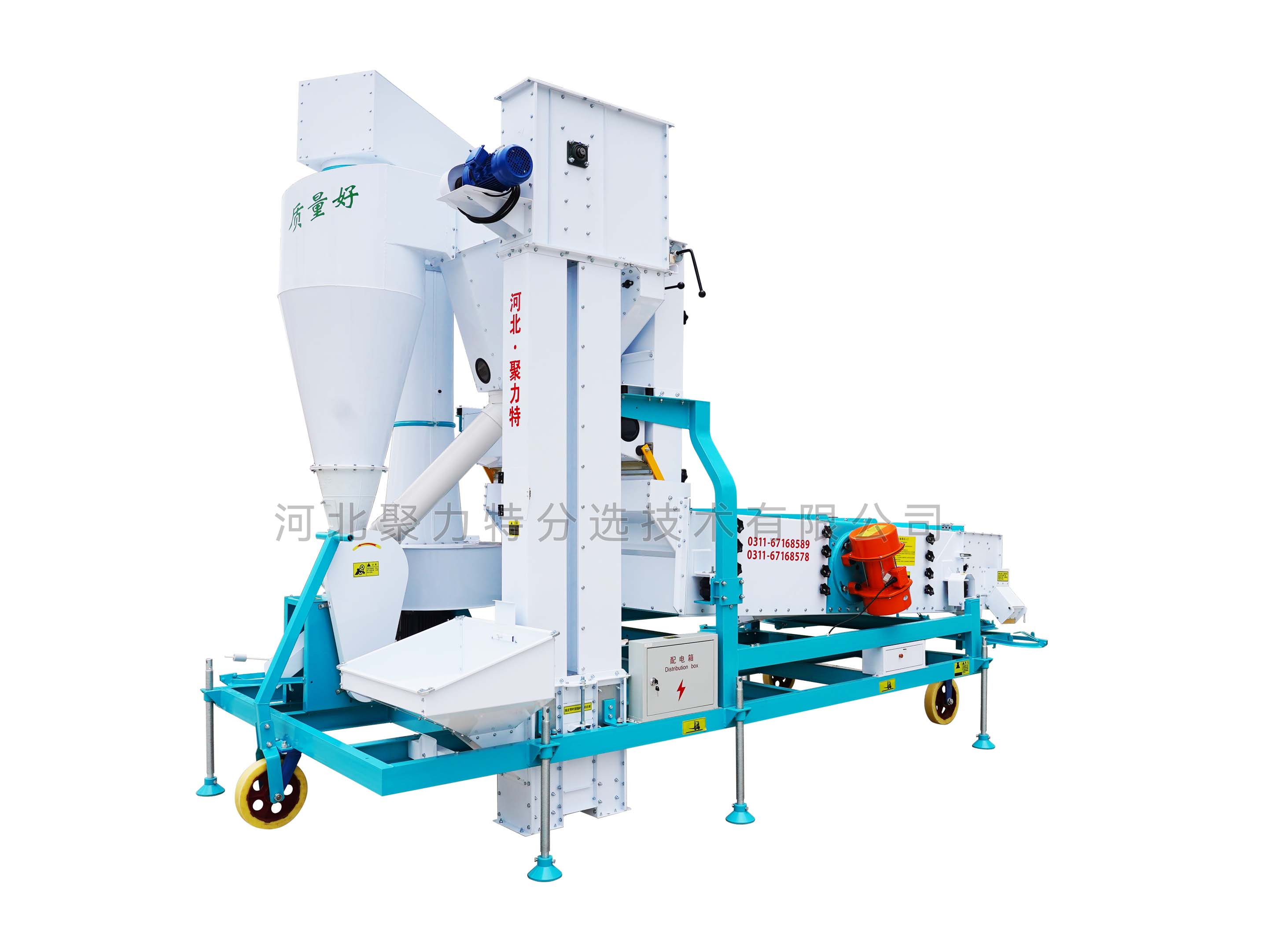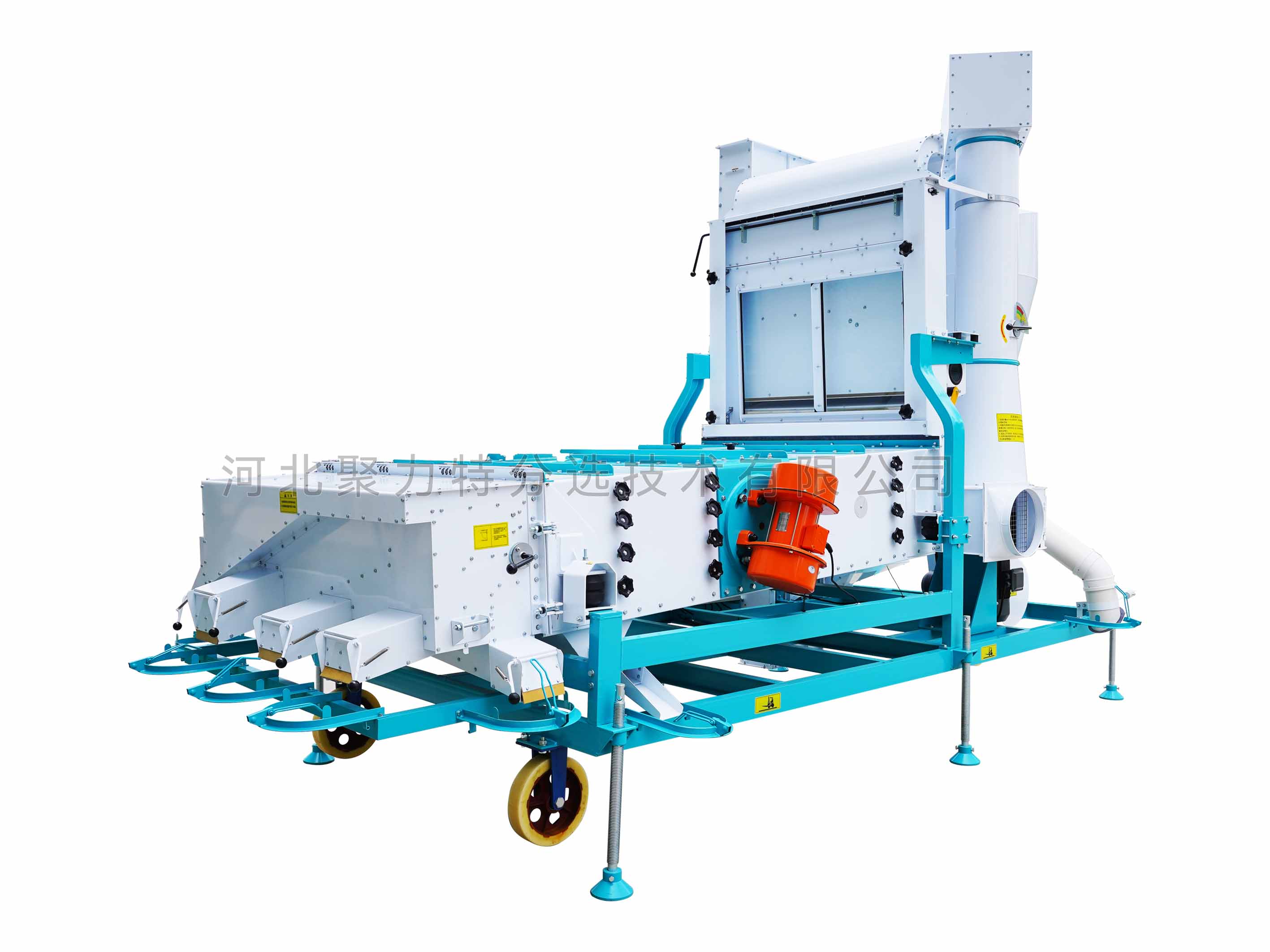 1、本機(jī)增加二次除塵,能將輕雜質(zhì)中秕粒、秸稈和粉塵糠殼分離開;