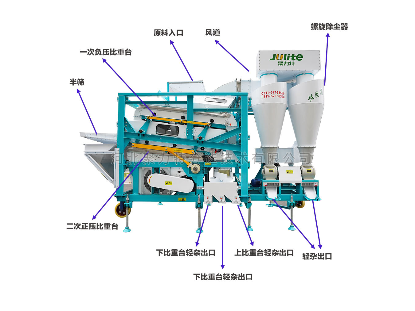 2、凈度高:粉塵、糠殼、秸稈等雜質(zhì)的獲選率≥99%,秕籽、霉變等雜質(zhì)獲選率≥98%;
