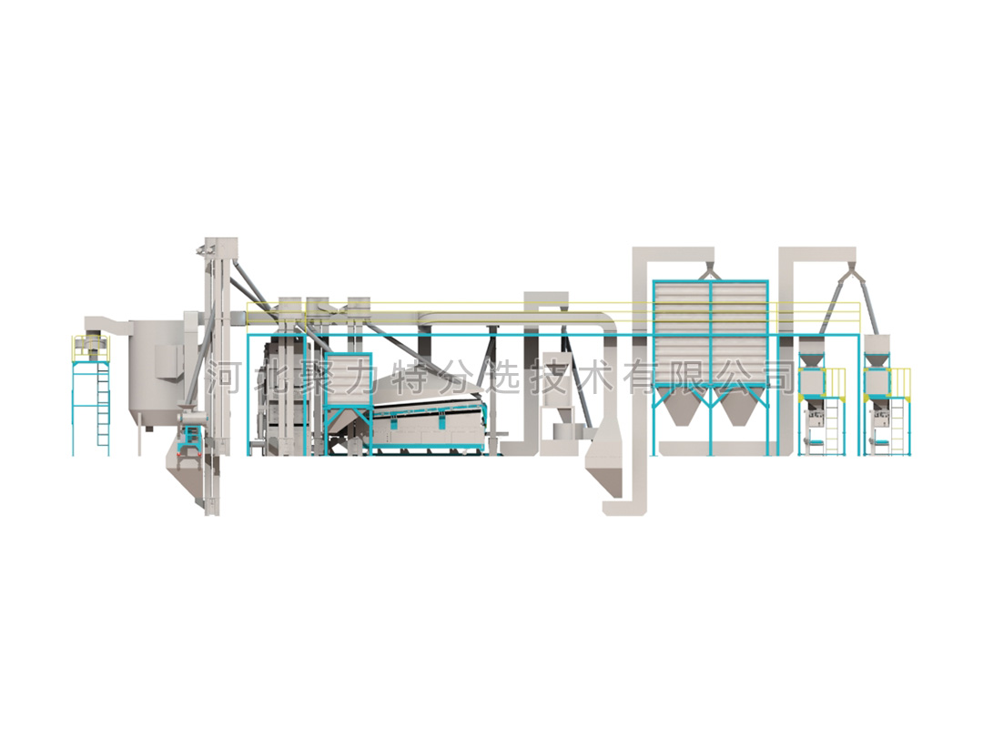 種子加工生產(chǎn)線由風(fēng)篩清選機(jī)、比重精選機(jī)、種子包衣機(jī)、定量包裝秤、提升設(shè)備、除塵系統(tǒng)、控制系統(tǒng)組成。