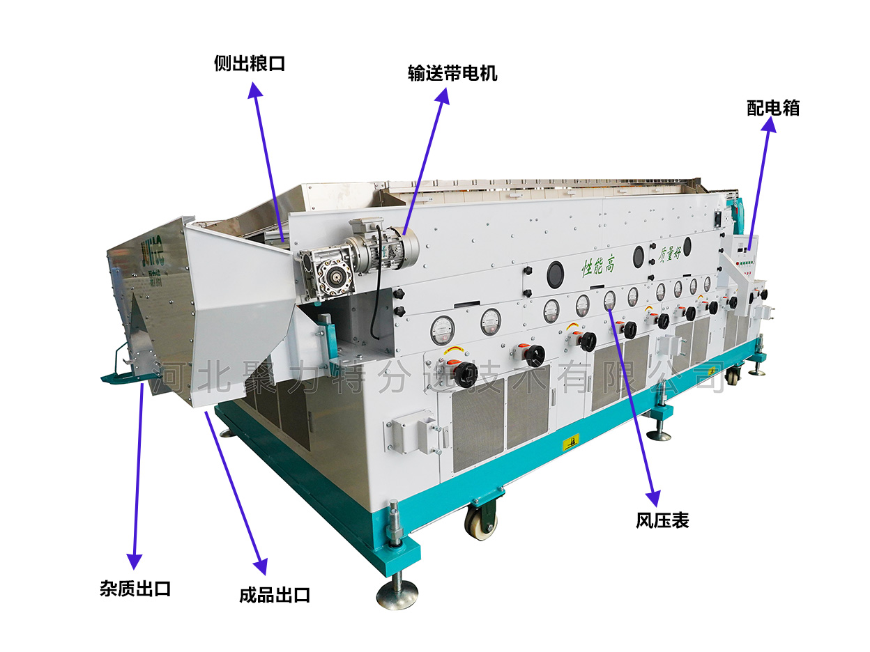 該機(jī)可有效去除物料中的秕籽、芽籽、蟲蛀粒、霉變粒、黑粉病粒等比重較輕的雜質(zhì),適用于小麥、玉米、水稻、各種豆類、西瓜籽及各種油料作物的精選加工。